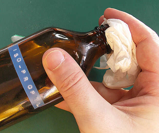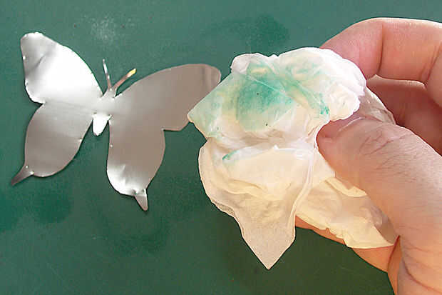 Una vez que completaste go "En blanco" mariposa sobre él con algunos del alcohol de frotamiento en un pañuelo de papel para quitar el marcador y limpiar la superficie.