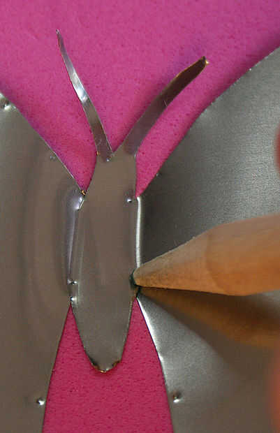 Con sus patrones de hacen punto de relieve en el ala para representar las crestas naturales tendría una mariposa, exactitud depende de usted, en esta ocasión decidí hacer arcas simple en el las alas. Estas líneas realzadas no necesitan ser tan profundas como las realizadas anteriormente.