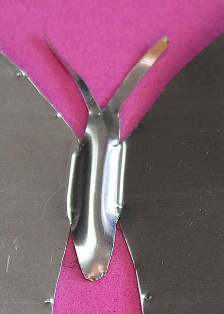 Con el lado que siempre quiere mostrar hacia arriba, utilice su punto embotado para presionar una línea en el espacio en blanco a ambos lados del cuerpo, de donde cada ala comienza en donde termina.
