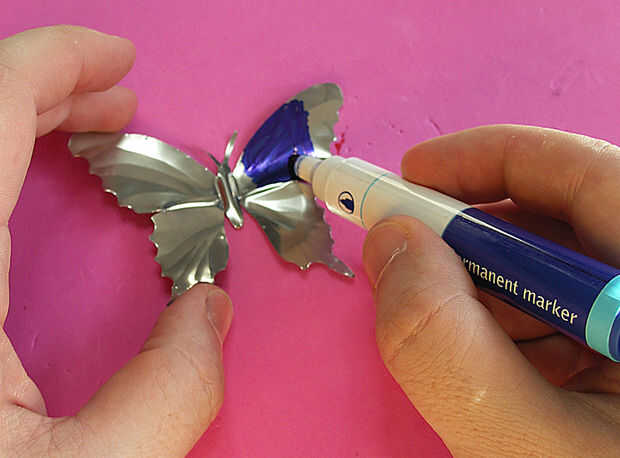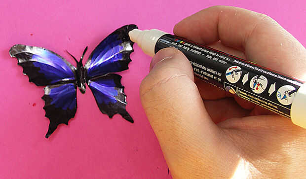 Posca o marcadores similares se puede utilizar para agregar detalles de luz, como los puntos blancos muchas mariposas tienen en sus alas.