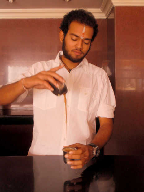 Ahora, vierta el café del recipiente de nuevo en el vaso, de una altura considerable. Verter el café de esta altura reduce el calor y añade una deliciosa capa espumosa.