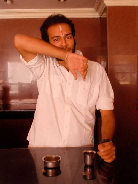 Después de su final sorbo de café de filtro India del sur, limpie su boca con el dorso de la mano.
