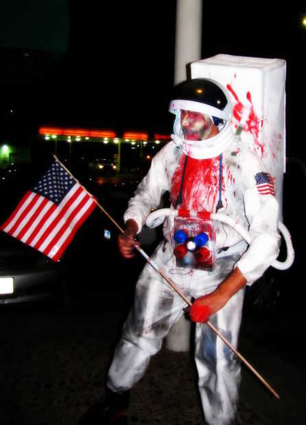 Añadir un montón de sangre si quieres ir como un zombie Neil Armstrong, me encantaría ver a alguien hacer este traje sin sangre/grossness.