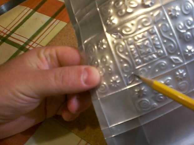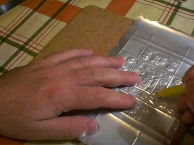 Usando el bolígrafo, inscribir una línea alrededor del interior y borde exterior de todos los motivos en relieve.