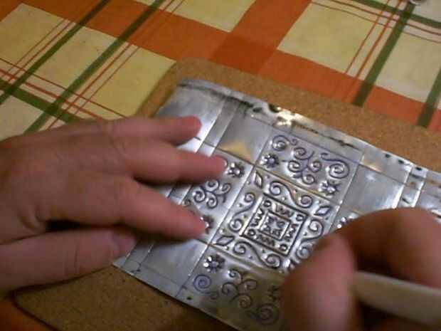 Este proceso de inscripción, que, a continuación, volver a inscribir el patrón crea un relieve mucho más para la decoración de la caja.