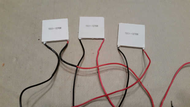 Asegúrese de comprar varios módulos peltier porque hay que una posibilidad de 1 o 2 de ellos no funciona. El cable rojo es el cable positivo y el negro es su cable a tierra. Creo que terminé ordenando unos 10 de los módulos peltier porque tal era una buena oferta a través de Amazon.