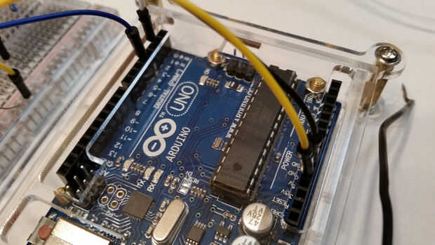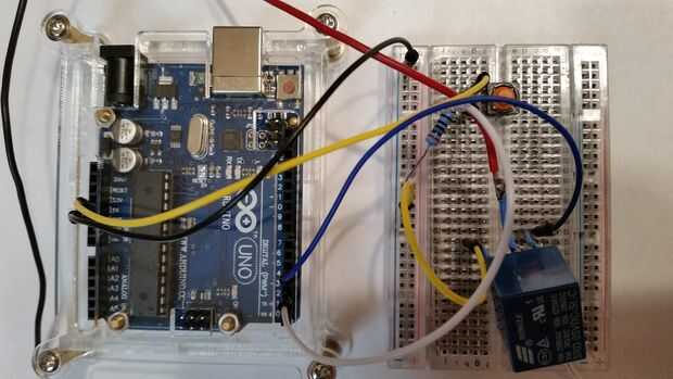 Cuando realice el cableado hasta mi tablero de pan que terminé usando un programa simple de arduino de la biblioteca del programa llamada Debounce que el relé de encendido y apagado presionando el botón. Empezando por el botón funcionó el cable (cable amarillo) desde el puerto de 5 voltios en el arduino a la pata izquierda en el botón. El cable negro (su cable a tierra) debe ir desde el puerto de tierra justo debajo del puerto de 5 voltios al carril de tierra de tu protoboard. La punta derecha del botón. Debe tener su resistencia de 1 k va desde la punta derecha del botón hasta el carril de tierra de tu protoboard. Ejecute un cable de puerto 4 a la punta izquierda de su repetidor. El diente del medio debe tener el cable positivo de tu módulo de peltier soldado y la punta junto a ella, (la derecha) debe ejecutar nuevamente a su carril de tierra y conecte al otro lado de la resistencia de 1 k.