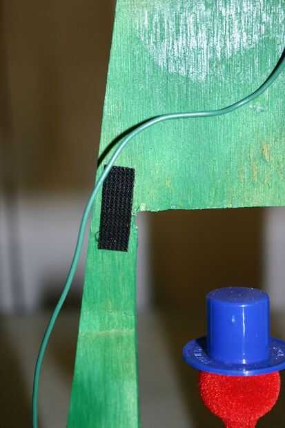 De la soldadura de una pieza de alambre entre pájaro #3 y #4 de pájaro.  Conecte un lado del Velcror al estrecho canal del árbol como se muestra a continuación.