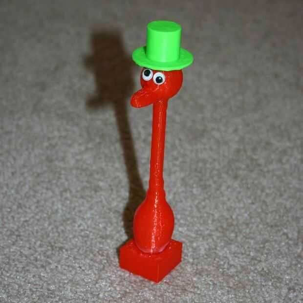 Imprimir el pájaro, la base y el sombrero. El pájaro a la base del pegamento y pegar el sombrero sobre el pájaro. Pegar un par de ojos de google y usted tendrá una réplica.