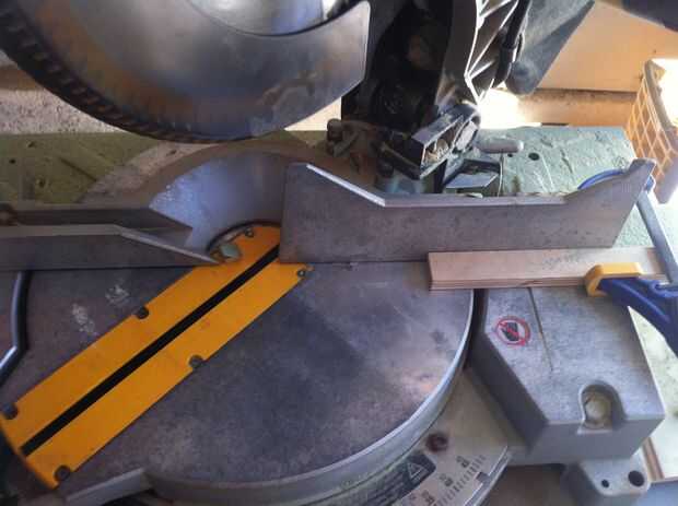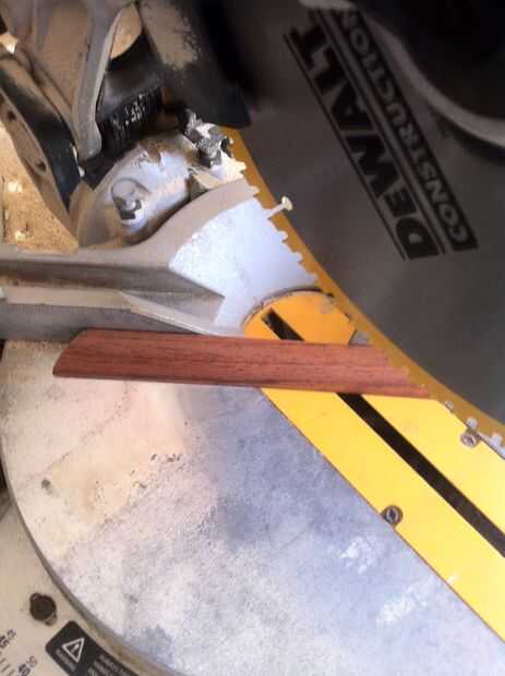 Una vez que usted ha hecho su marca, cortar con un ángulo de 45 º opuestos su corte anterior. Ahora tendrás un pedazo corto del cuarto round con un ángulo de 45 º a cada lado, dentro de los cuales estará cerca de la anchura de un entarimado. Tome ahora un trozo pequeño pedazo de madera y poner su pequeño pedazo de cuarto redondo hacia abajo con la hoja de sierra contra él y fije con abrazaderas la chatarra detrás el cuarto redondo que puede cortar tantas piezas como usted necesita idénticamente. Una vez que se corta el número de piezas (cuatro por coaster) a esta longitud, la operación alrededor del tirón y corte 45 fuera de su lado... duplicar su primera pieza.