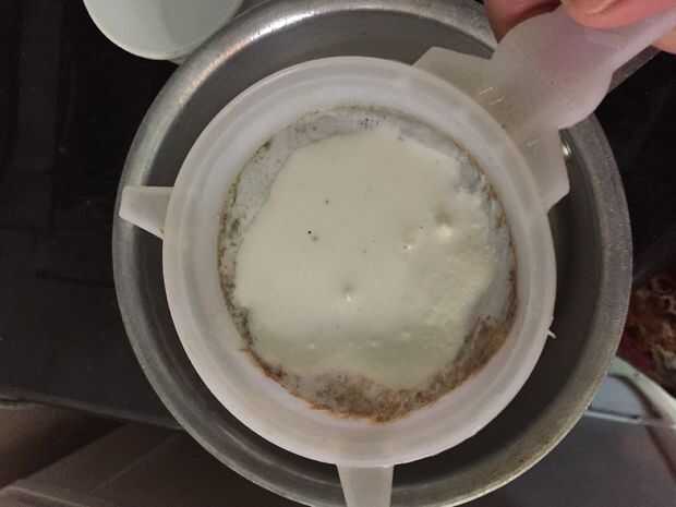Vamos a utilizar este jugo para hacer jarabe de almendra. Puede tostar la pasta de almendras en un horno para hacer harina de almendra. Sin embargo a menudo utilizo esta pulpa para agregar a la leche de mi marido Horlicks.