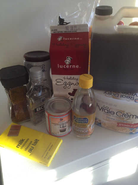 En un tazón, combine y golpe helado, vodka, rompope, leche condensada, jarabe y café hasta que quede suave
