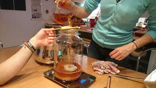 Kombucha es una bebida de té fermentado popular en Rusia, China y otros lugares.Las formas de la cultura una piel correosa llamada a la "madre" que flota en la parte superior.Episodio de Instructables TV de esta semana muestra cómo se disputa la