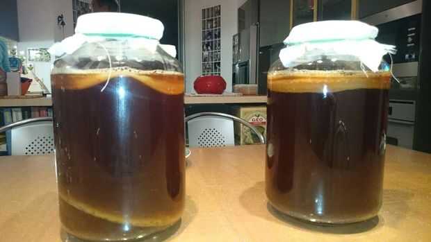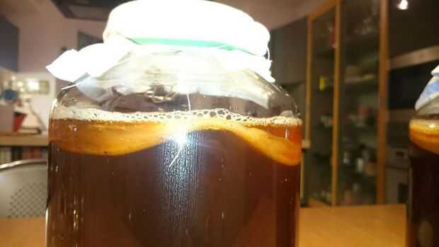 Mantener el frasco a temperatura ambiente, fuera de la luz solar directa y no moverlo. Fermentar durante 7 a 10 días, control el kombucha y el scoby periódicamente.