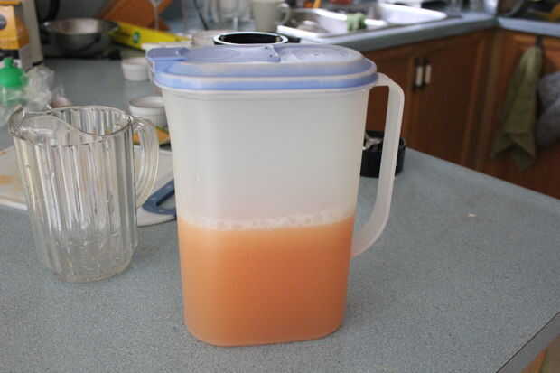 Añadir el resto del agua a la mezcla y revuelva, luego sabor y agregue más azúcar si fuera necesario, revuelva otra vez y vierta en la jarra de jugo. Luego de ponerlo en la nevera por una hora. Luego verter sobre hielo cuando termine. para un sabor adicional porque la bebida no es muy fuerte añadir un Sprite o el alcohol.