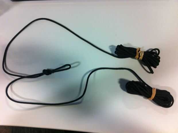 Primera creo que es lazo el paracord en la mitad y atar un nudo temporal en el punto medio, esto ayudará a retener la mitad del recorrido mientras recoger cada extremo en a un paquete de 2 pies del centro y celebrar junto con las bandas elásticas.