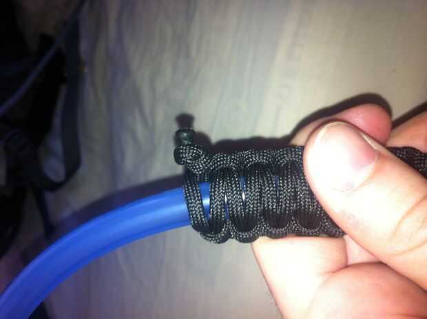 El segundo final tendrá que salir un poco más largo y atar un simple nudo que en cerca de la armadura como puedas, (he encontrado que simplemente cortar y fundir como de costumbre no creó un bloqueo adecuado). Cortar el cordón después del nudo y se funden al final.