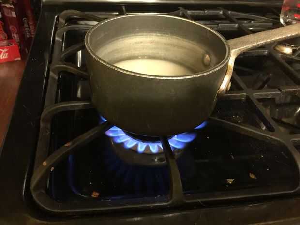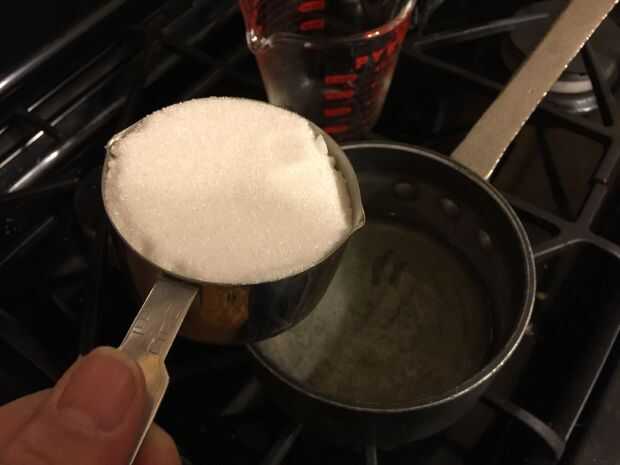 Revolver la mezcla hasta que el azúcar se haya disuelto completamente en el agua, luego retire la olla del fuego.