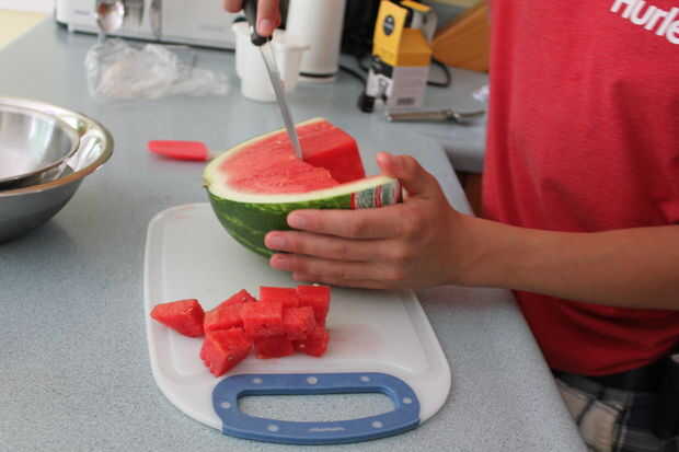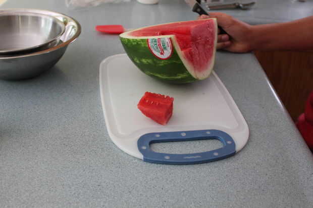 Cortar la sandía en trozos, cantidad es de su agrado.