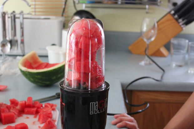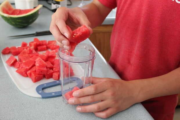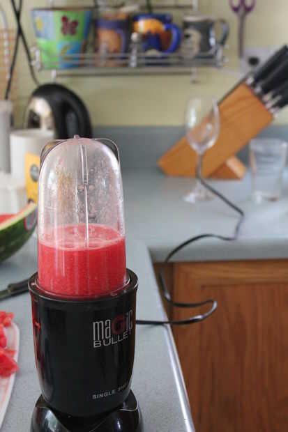 Usar su varita mágica o una licuadora para puré de la sandía.