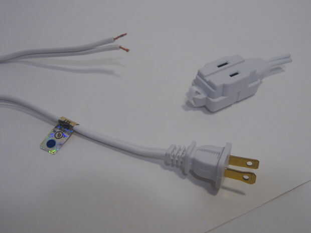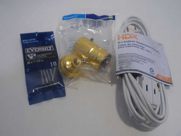 3. Pase el cable a través del orificio en el lado de la base y a través de las latas y taco cuadrado en la parte superior de la lámpara.
