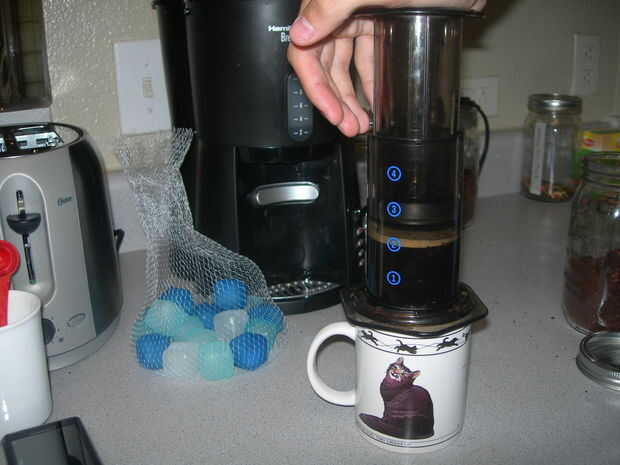 cansado de pagar $5 por pop para una bebida de café frío, puse sobre el aprendizaje cómo podría hacer mi propios. El único problema era, no tuve ninguna máquina de café espresso, ni particularmente quiero uno. Bastidor en la web, que consistió en ped