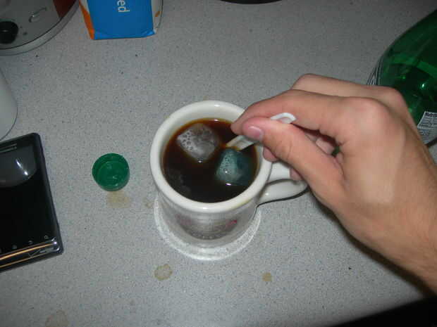 esta bebida de café mezclada es una golosina dulce y frío perfecta para una tarde de verano perezoso y caliente. Esta receta llenará un 12oz taza.Paso 1: Un viento frío sopla En primer lugar usted necesita hacer cubitos de café.Vierta la temperatura