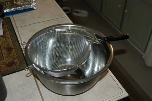 Otra vez, tazas y los filtros regulares son demasiado pequeño y lento. Tengo muy buena suerte con mi colador de malla muy bien tamaño y una toalla de papel vaciado en un recipiente bonito, grande de acero inoxidable. Soy un gran fan de tazas de metal grande y creo que cada cocina debe tener al menos uno.