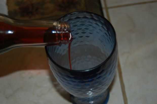 - Vierta un poco de sirope de sabores en una copa. Estoy usando frambuesa aquí, ya que es el único encuentro local que no es sabor artificial. Voy a tener para de otras tiendas que puedo comprar las cosas buenas en el.