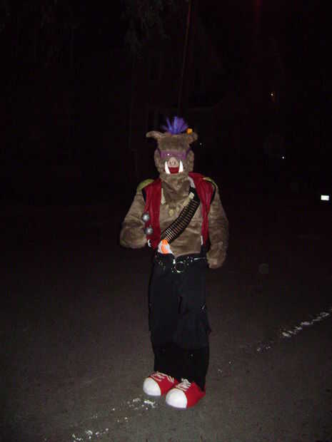 This is a costume I made for myself with mostly cardboard and makedo, to impress my kids and other kids during trick or treat :)En acción!!!!