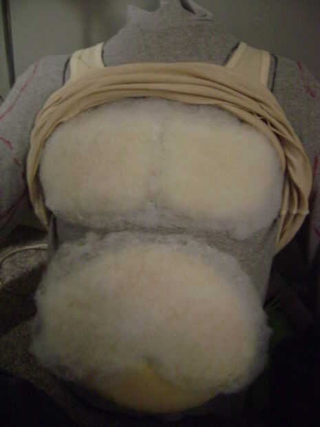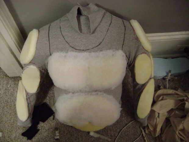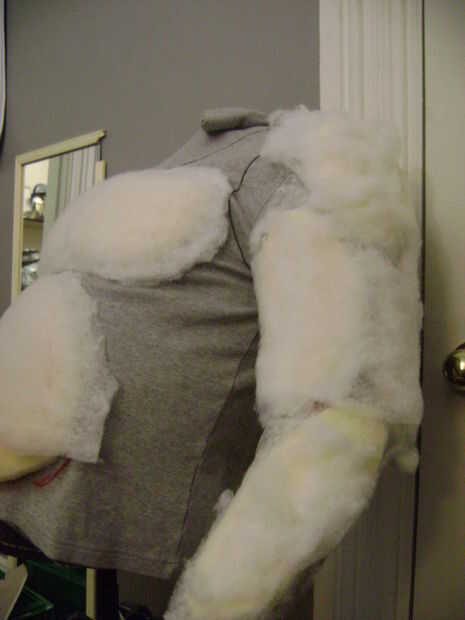 Los bordes de los músculos de la espuma mira demasiado fuerte por su propia cuenta, así que les completan pegando una capa de guata sobre la parte superior.