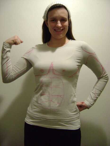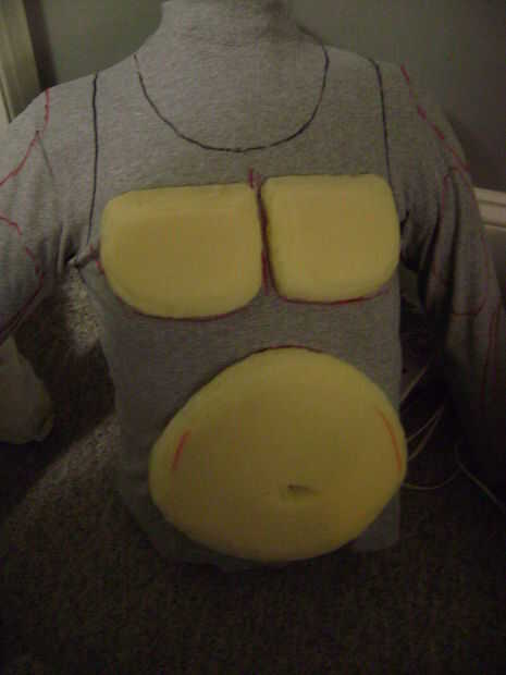 Cortar los músculos fuera de espuma de tapicería y pegar en la camisa, utilizando las líneas dibujadas como su guía.
