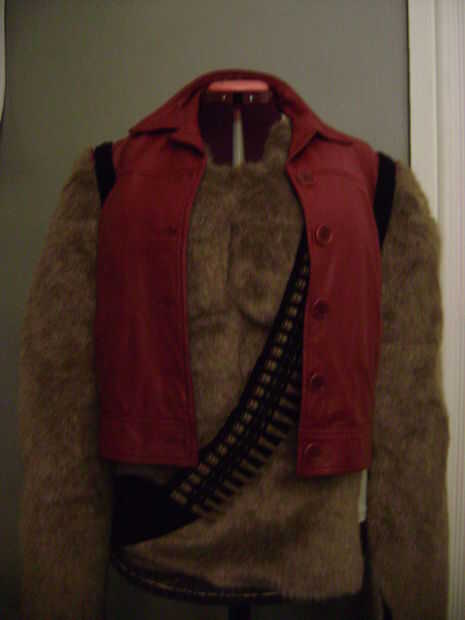 Torso de Bebop es 2 piezas: un cofre de piel que se enciende como una tapa del tanque y los brazos de piel y chaleco rojo que se unen para hacer una chaqueta.