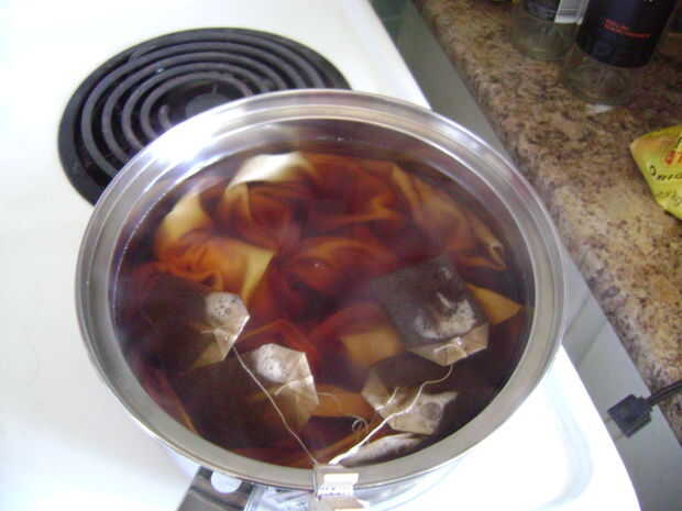 Si la tapa del tanque que está utilizando es demasiado blanca, tinte poniendo en una olla de té.