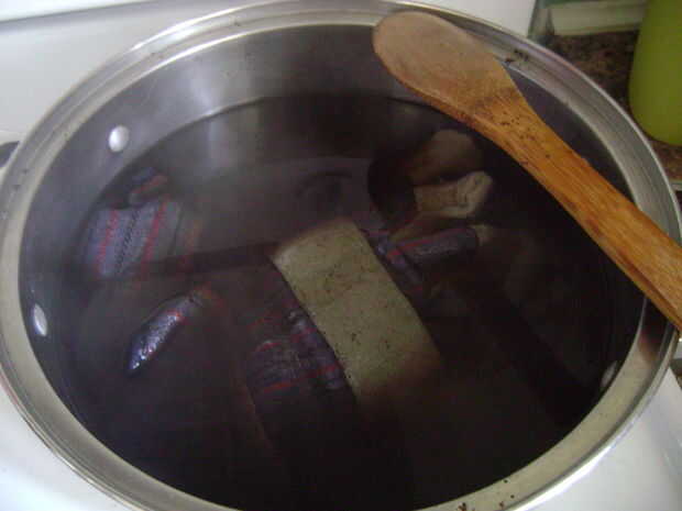 Tenga en cuenta que el teñido puede provocar los guantes a encogimiento, así que empieza con los guantes más grandes de lo necesario.
