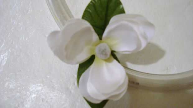 5. Pegar la flor de seda para cubrir el tornillo.