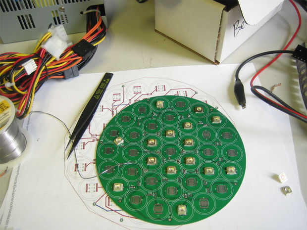 Usted querrá empezar por conseguir una placa de LED fabbed en el fabricante de su PCB favorito y adquirir todos los materiales necesarios (imagen 2a).