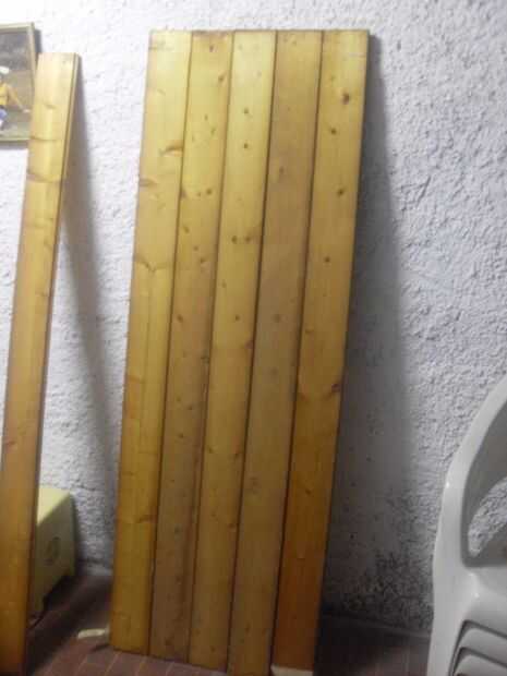 Los tablones de madera tenían una característica que me ha ayudado mucho en este proyecto. Tenía algunas '' importancia '' de un lado y en el otro eran huecos. Esto ayudó a las tablas sólo '' bloquear '' juntos. Por lo tanto, para este paso sólo apliqué mucho de cola para madera con corto tiempo de secado. Después pegué las planchas que simplemente deje secar durante un par de horas y luego con un pequeño tablón de 5 cm x 35 cm y tornillos pequeños de 1, 5 cm me uní a ellos. Aunque no tengo acero ensambladoras que generalmente se utilizan más para este tipo de trabajo, el pequeño tablón de madera funcionó bien!