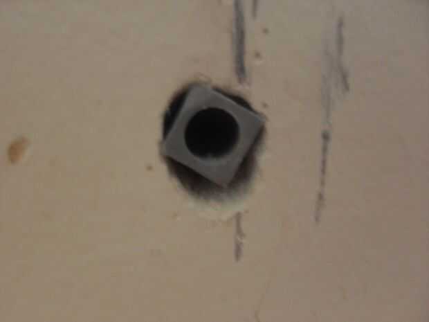 En el primer agujero: no voy a mentir... He mamado un poco! Taladré demasiado y el diámetro esperado fue mayor de lo que debería haber sido, pero reparar con algún estuco. Tengo que admitir que este fue un trabajo muy duro, me refiero hacer 6 agujeros en la pared era un poco brutal para mis brazos...! Tuve que perforar ladrillos así asegúrese de que sabe cuál es la composición de la pared...!