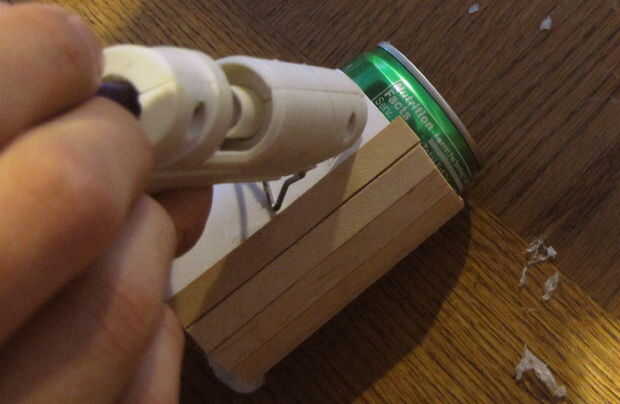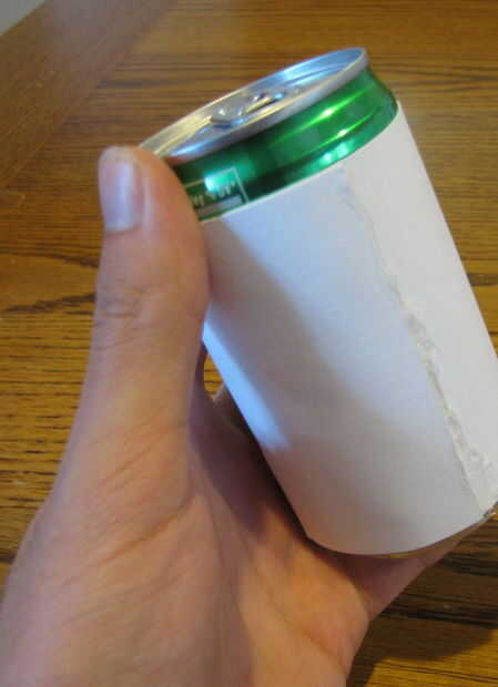 Para hacer esta Copa, encontrar una lata que puede ser utilizada para una referencia de tamaño. Usé un pequeño pop-puede obtener el tamaño adecuado. Primero envuelve un pedazo de cartulina papel alrededor de un par de veces y había pegado en lugar. No te preocupes si es un poco débil en este punto, los palitos fortalecerán significativamente.