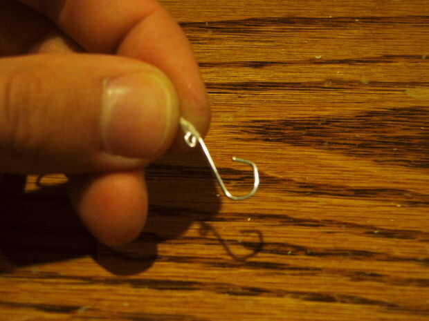 Por último añadir al corcho y gancho para hacer el gancho que simplemente tomé a un regular tamaño de clip de papel, corta en dos y usa una nariz alicates para doblar y dar forma. Para el corcho cualquier grano rojo se ven muy bien! He encontrado una perla de gran bulbo en forma de.