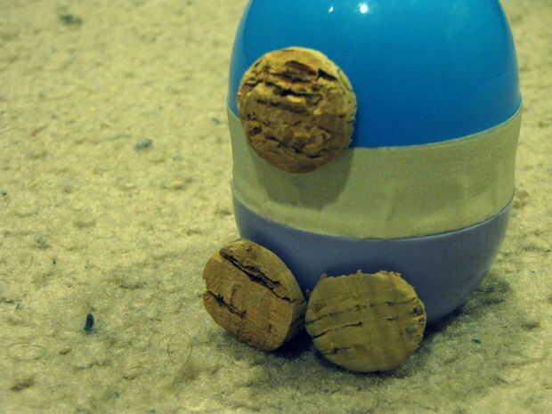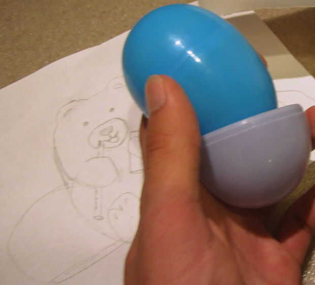 Al formar el oso, uno primero debe tener una buena idea en cuanto a lo que debería ser el oso. Pensé que esta especie de oso de peluche de diseño se vea bien y ser simplista para hacer. Para obtener la forma básica del oso encontré que unos huevos de plástico grandes funcionaron bien huevo stremely! Un poco más detallada, como un hocico y pies, efectivamente fue hecho con Corchos! Usé pegamento caliente para fijar estas piezas. Colocar un globo firmemente sobre la parte superior de ambos dio una buena superficie para el papel maché venir, corta el hocico de globo restante!