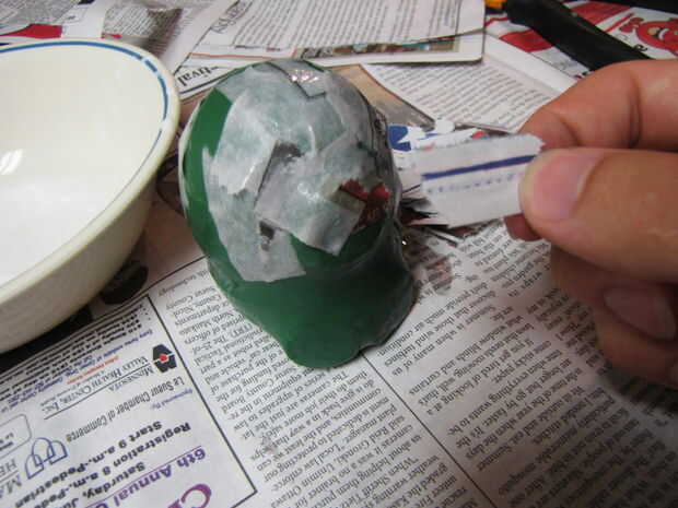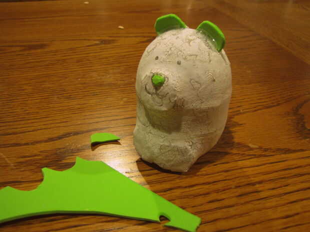 Cuando macheing de papel el oso, yo aconsejaría utilizar cuadrados de periódico muy pequeño. Puesto que el oso es una superficie más redonda y bien formada puede ser más difícil envolver con papel maché. No te preocupes demasiado sin embargo, habrá oportunidades para perfeccionar la forma una vez que el pegamento se seca!