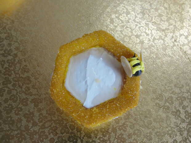 Justo antes de servir, colocar 2 a 3 cucharaditas de miel en el centro de cada panal.