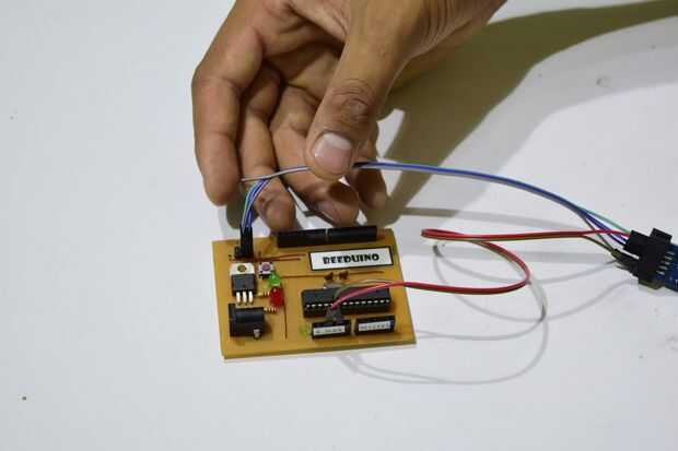También puede quemar el cargador de arranque usando el USBASP. El USBASP viene con un conector de 10 pines que es inútil para nosotros así que vamos a utilizar puentes de hembra a hembra para establecer conexiones entre el USBASP y la cabecera ICSP Beeduino.