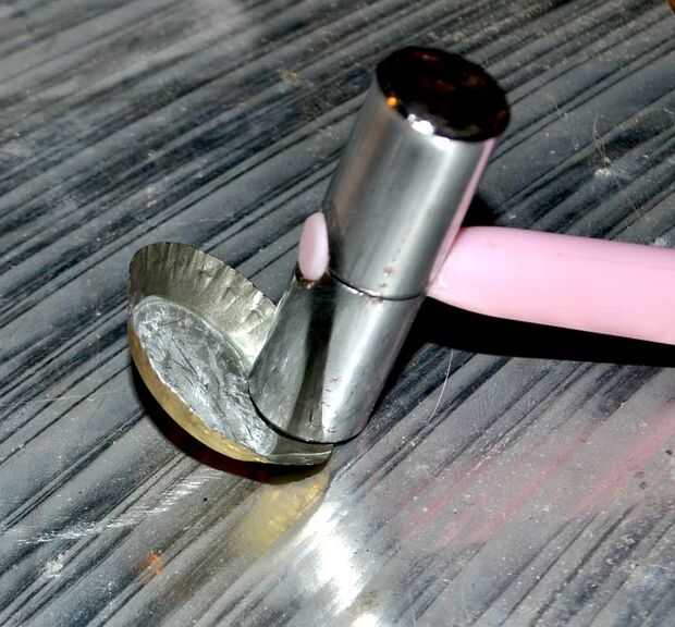 Dar a las tapas de un bonito patrón cóncavo con el martillo.