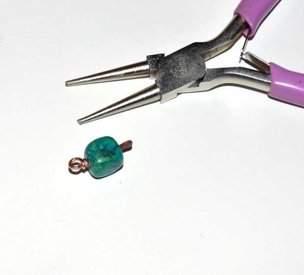 Inserte el cordón y hacer un aro en el otro extremo del alambre con los alicates redondos.