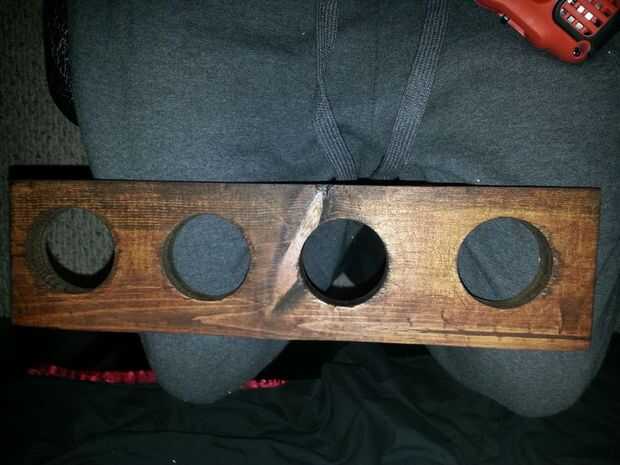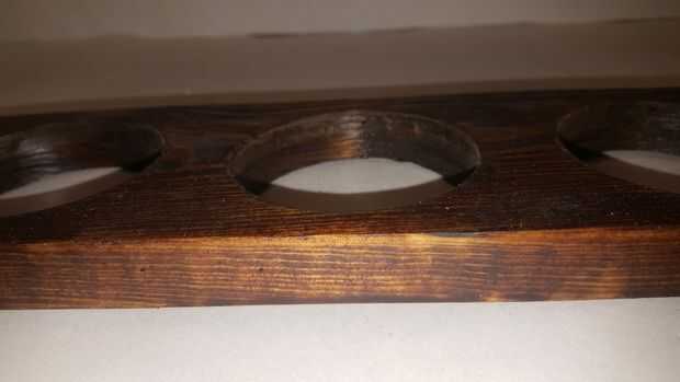 Después de tener una plantilla de hecho es bastante fácil de hacer el vuelo. Coloque la plantilla sobre un trozo de madera. Mina fue sobre una media pulgada de espesor. La pongo y rastrear al contorno del vuelo. A continuación, si marcó los orificios toman algo y poke lanzó el centro de los agujeros de donde perforar y cortar. Colocando una regla sobre las plantillas de papel ayuda a dibujar un lápiz recto line.use. Sacar de su sierra y corte el marco del vuelo de la madera. He utilizado una sierra de calar. Entonces tendrá que cortar los agujeros para las gafas. Utilicé un cortador de Sierra de agujero de 2,5 pulgadas que es que poner un poco en mi taladro. Tenía los cuatro centro de los orificios marcados de manera que simplemente perforé el camino lanzó la madera haciendo los cuatro orificios para los vasos de cerveza. Después de tener los orificios de corte, pulir los bordes de los agujeros. También lijar los bordes del vuelo en este momento. No olvidar la arena en la parte superior e inferior también. Limpie todo el polvo y empezar a manchar. Asegúrese de que cuando la coloración donde hay el menor contacto con el vuelo como sea posible. otra sugerencia es mover un montón y mantener cepillar la mancha para que se seque uniformemente y agradable. Asegúrese de obtener el tinte encima de todos lados, inferior y en los bordes de los agujeros que donde cortar. Dejar secar y servir su vuelo de cervezas. Beber con responsabilidad y sólo if de edad.