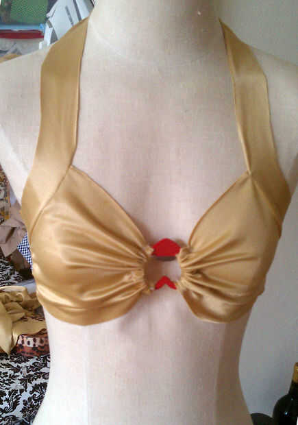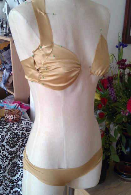 Usé unos trajes de baño que ya tenía que redactar algunos patrones, eligió uno y ajustado a partir de ahí. Soy afortunada de tener un dressform que es aproximadamente el tamaño de mi pin cosas y alboroto con las formas. Mi próxima versión definitivamente tendría una base más modesta. Realmente no estoy seguro de que esto usaría en público.