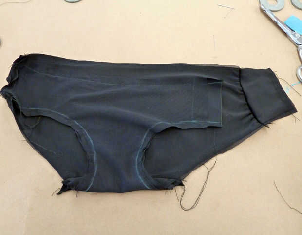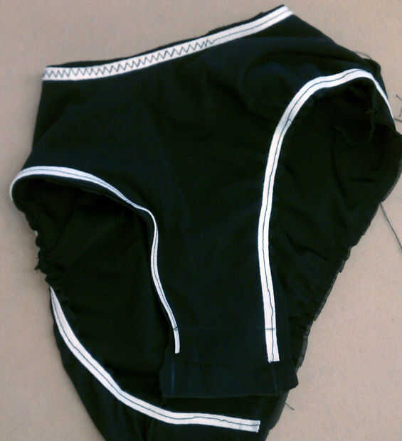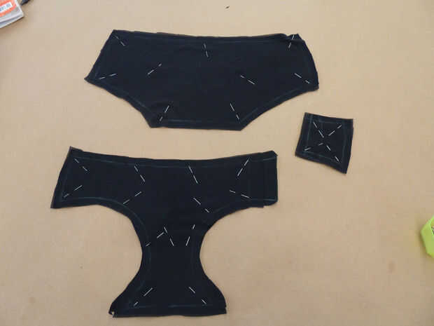 Consejo: Estira el elástico a lo largo de la parte posterior de la abertura de la pierna, pero en posición plana a lo largo de la parte delantera.